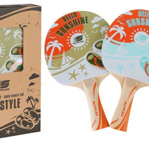 Sada designových pálek a míčků na stolní tenis.