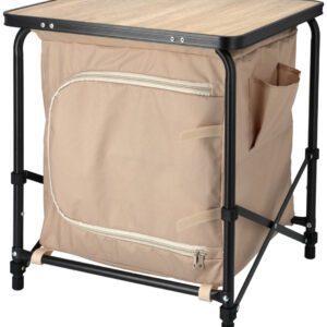 Skládací kempingový stolek s úložnými prostory.
