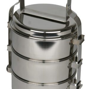 Třípatrový nerezový jídlonosič.