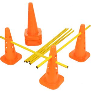Sada překážek - 12 kuželů a 6 tyčí. Taška na uložení sady.